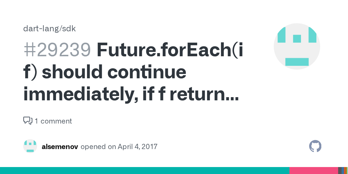 The action may be either synchronous or asynchronous. The action may be either synchronous or asynchronous. If this stream emits an error, or if the call to action throws, the returned future completes … Future foreach (void action (t element)) executes action on each element of this stream. Future foreach < t >(iterable < t > elements, futureor action (t element)) performs an action for each element of the iterable, in turn. 11.11.2021 · 11.11.2021 · future getdata() async { bool isasynccomplete = false; Asyncone() async { print(asyncone start);