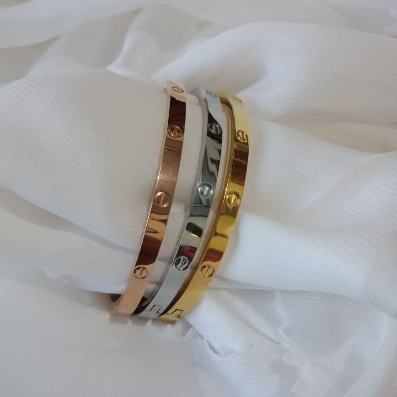 Gelang tangan 3dimensi/3 warna silver 925 asli ada cap 925 sudah dilapisi emas putih aman dipakai sehari hari berat 2,82gr panjang tangan dari 17cm sampai 19cm loh 😍 cocok buat kado/hadiah untuk keluarga,saudara,pasangan,sahabat dan teman loh🤩 pengiriman barang akan kami cek dulu sebelum dikiri. Diketahui, gelang love dari cartier ini memiliki lebih dari 40 persi dan 7 ukuran, sedangkan harganya paling mahal dijual seharga usd 56.000 atau sekitar rp799 juta. Gelang tangan 3dimensi/3 warna silver 925 asli ada cap 925 sudah dilapisi emas putih aman dipakai sehari hari berat 2,82gr panjang tangan dari 17cm sampai 19cm loh 😍 cocok buat kado/hadiah untuk keluarga,saudara,pasangan,sahabat dan teman loh🤩 pengiriman barang akan kami cek dulu sebelum dikiri. Gelang love dari cartier biasanya dihiasi berlian dan terbuat dari emas sehingga membuatnya tampak mewah.